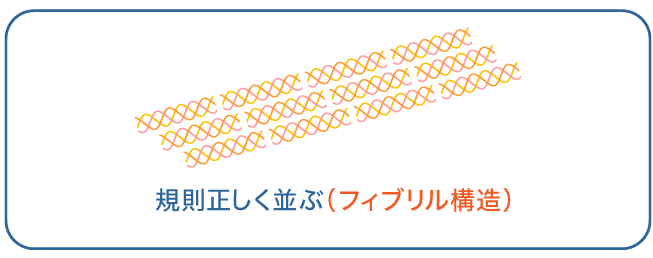 うるみこコラーゲンは、塗布するとコラーゲン分子が綺麗に規則正しく配列してフィブリル膜を作ります。 このフィブリル構造は皮膚と同じような構造をしており、熱安定性が高まり肌を保護します。