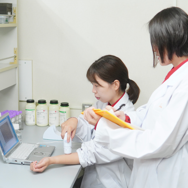 私たちはコラーゲンを製造するところから、化粧品の研究開発まで一貫して行っています。 いつも私たちが感じているコラーゲン本来の保湿力や肌なじみの良さが発揮されるよう、コラーゲンの濃度や他成分との配合を検討し開発しました。 コラーゲンを惜しみなく使って良さを感じていただけることが、私たちの喜びです。
